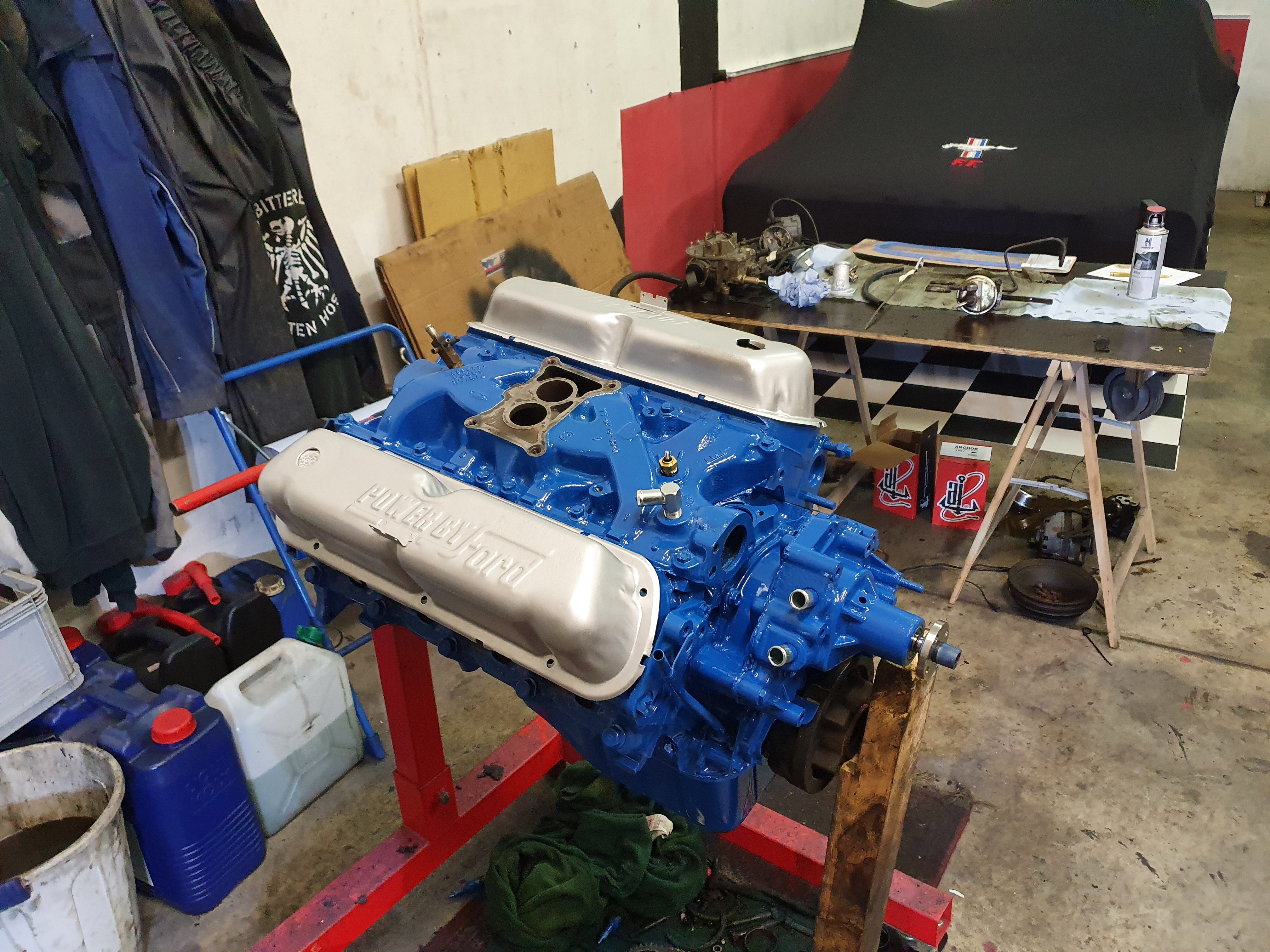 Motorraum ist vorbereitet, soll heißen ordentlich gereinigt, Schläuche und Kabel erneuert, bzw überholt, Mattschwarz lackiert, ich mach morgen mal ein Foto.