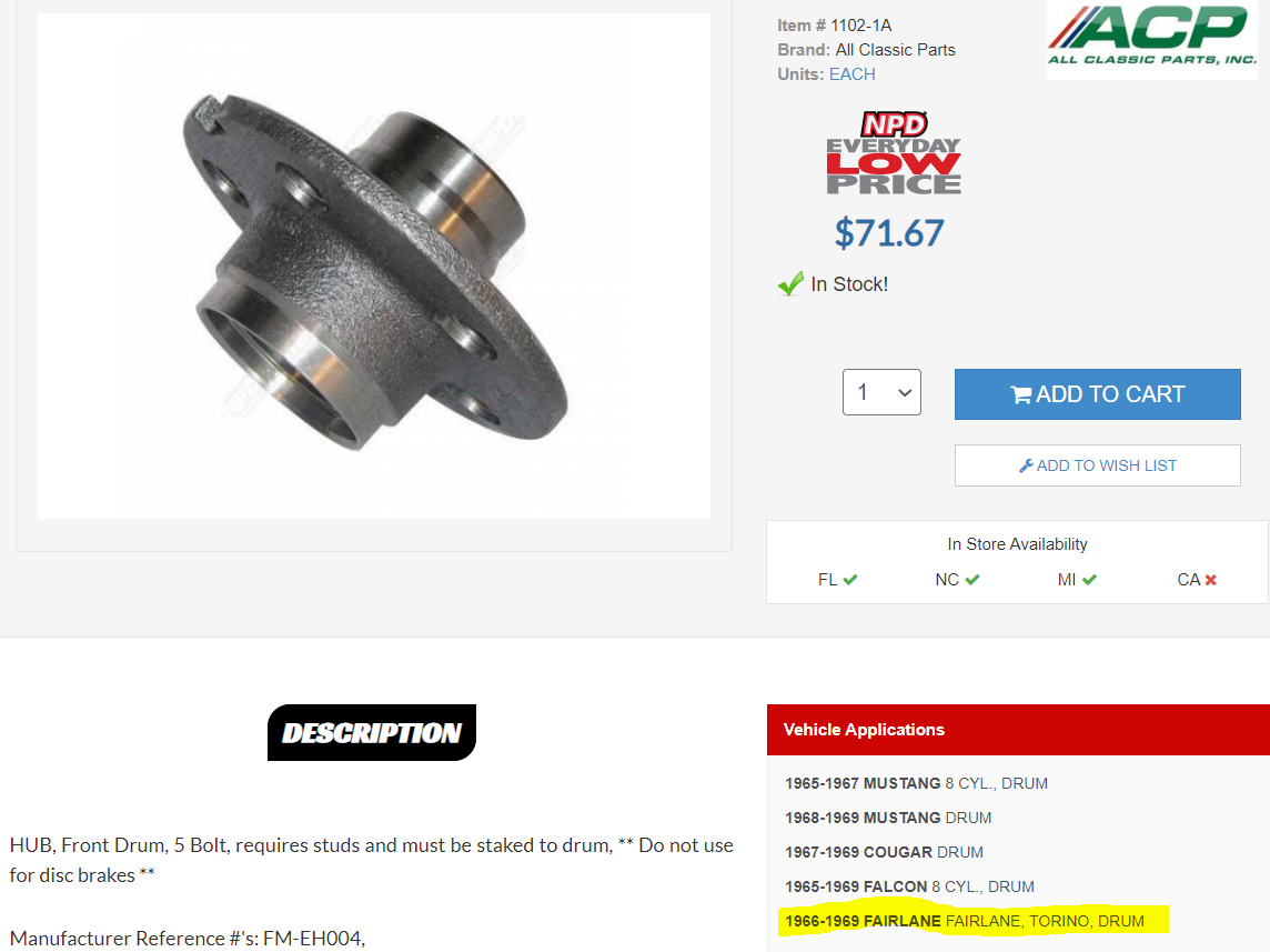 Ich habe nur die Teile für den '66-'69 Torino bzw. für Mustang gefunden (siehe Bilder)