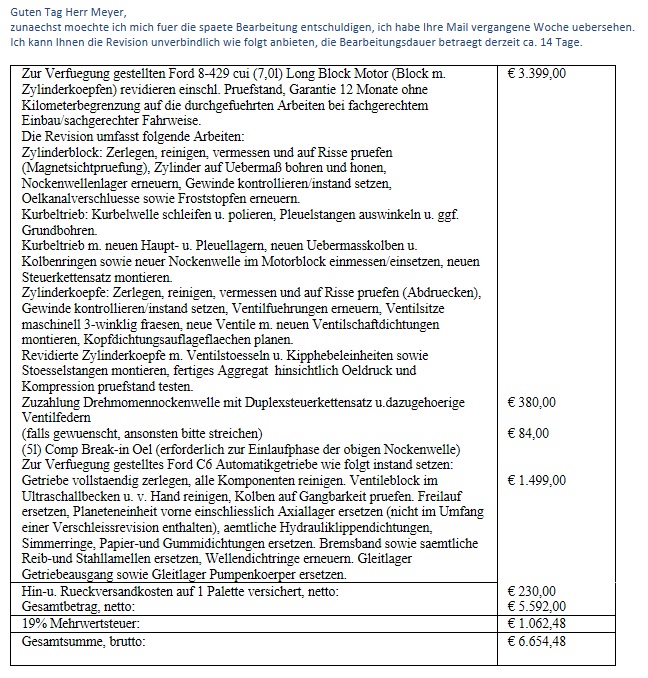 Ich habe auch meinen Motor dort machen lassen, bzw. einen "neuen" von ihnen gekauft, da mein Cleveland nicht mehr revidierfähig war...