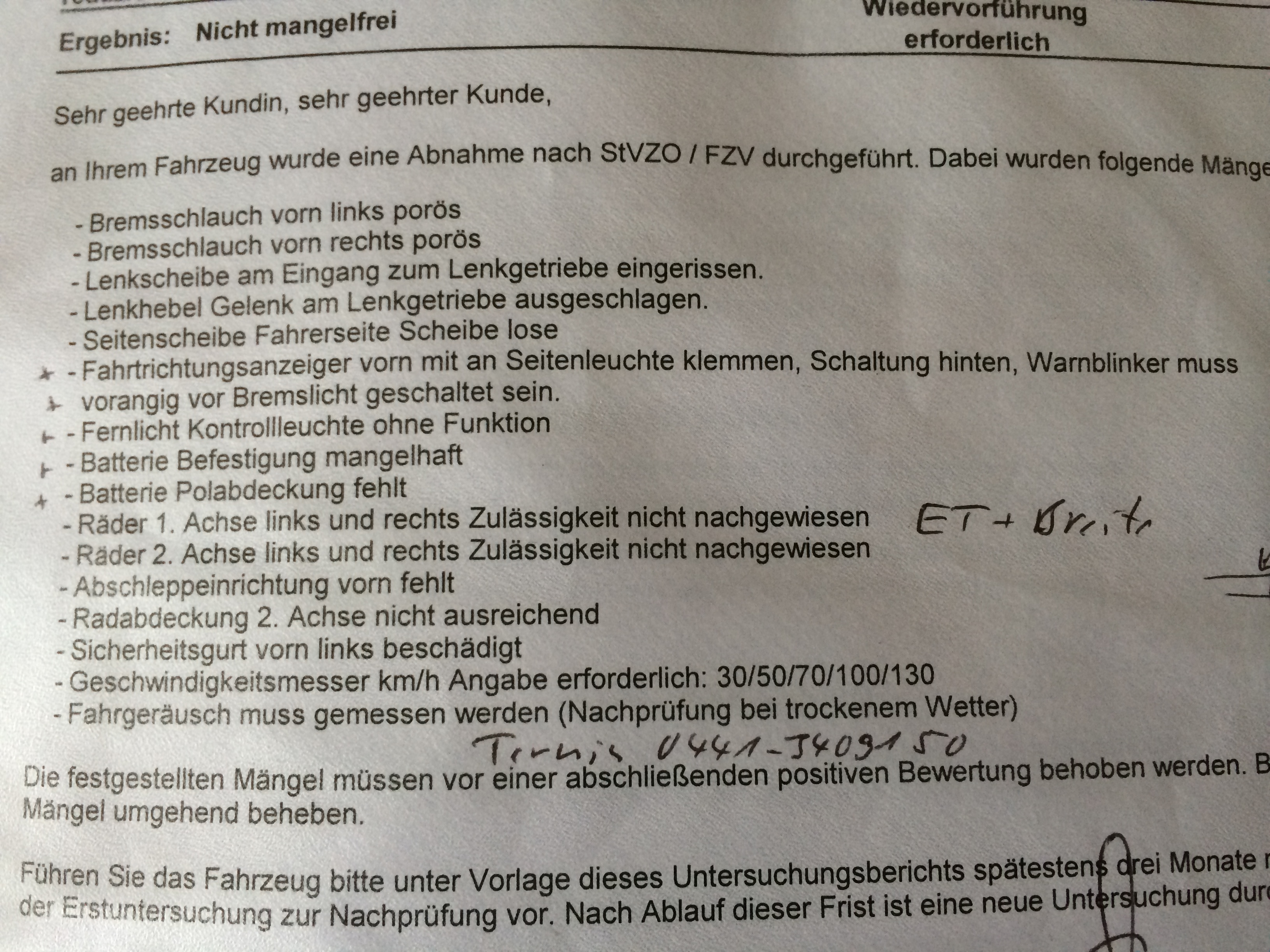 Meiner Meinung nach ist alles im grünen Bereich. Bremsschläuche sind porös ja, hätte ich auch sehen müssen. Lenkung fühlt sich super an beim Fahren finde ich. Aber Abschleppeinrichtung hab ich noch nie gehört. Abdeckung hintere Reifen ist kacke, finde ich nicht gerechtfertigt. Das mit dem Sicherheitsgurte finde ich unverschämt. Die km/h Aufkleber... Hmm ist so eine Sache bei uns im Club gibt es welche die die brauchten, andere nicht.